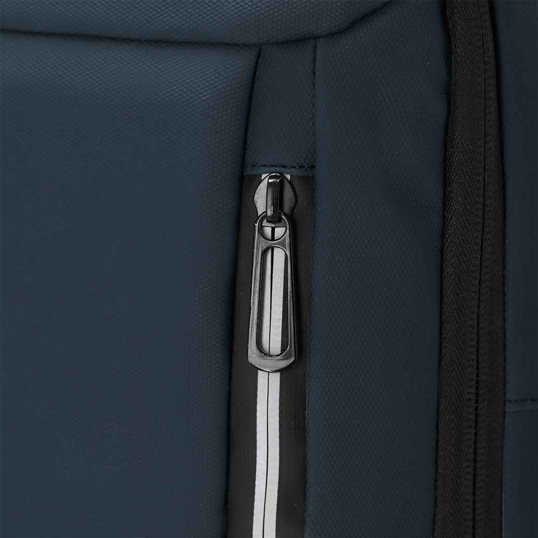 Uitschuifbare rugzak gemaakt van duurzame PU. Uitgerust met een dubbele ritssluiting, met de mogelijkheid om de capaciteit te vergroten. Met een gevoerd interieurvak voor laptop tot 15 inch en tablet tot 10". Aan de voorkant heeft hij drie voorzakken en twee reflecterende strips voor beter zicht. Comfortabel gevoerd, ademend en verstelbaar schouderbanden, met mogelijkheid tot sluiting van de gesp. Bevat twee handgrepen, één bovenop en één aan de zijkant, samen met USB-ingang. Bevat tape om het vast te maken aan de trolley en koffers.. We kunnen uw logo bedrukken in maximaal 1 drukkleur op de voorzijde van de tas. Indien u deze rugtassen zonder opdruk wilt bestellen dan kan dat al vanaf 5 stuks.