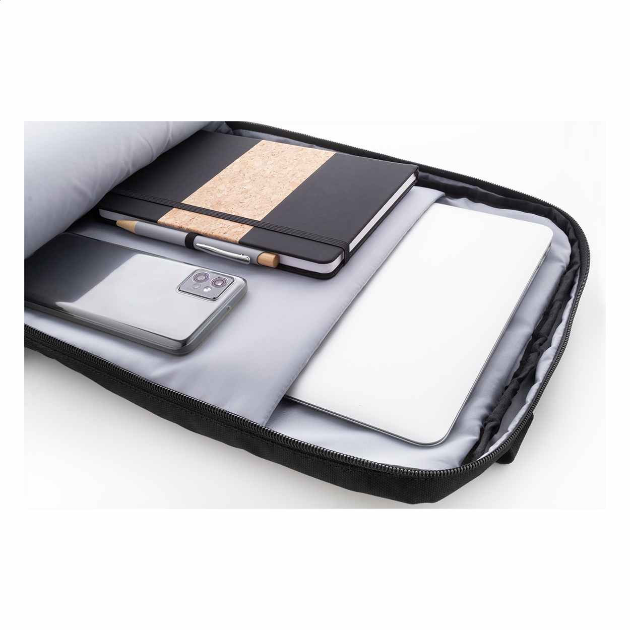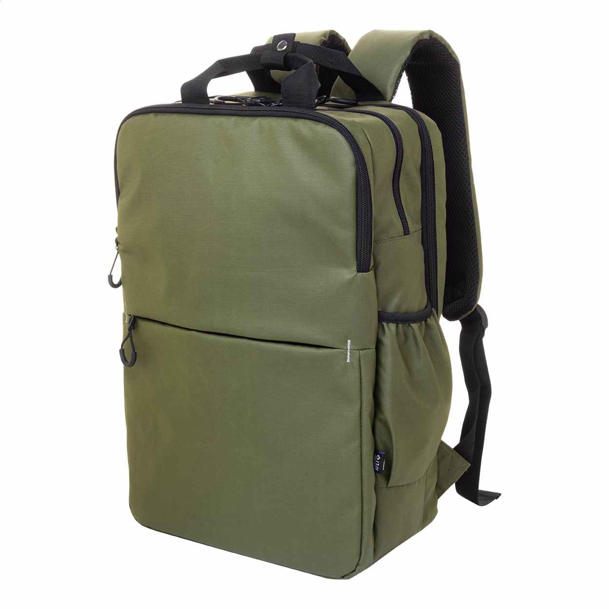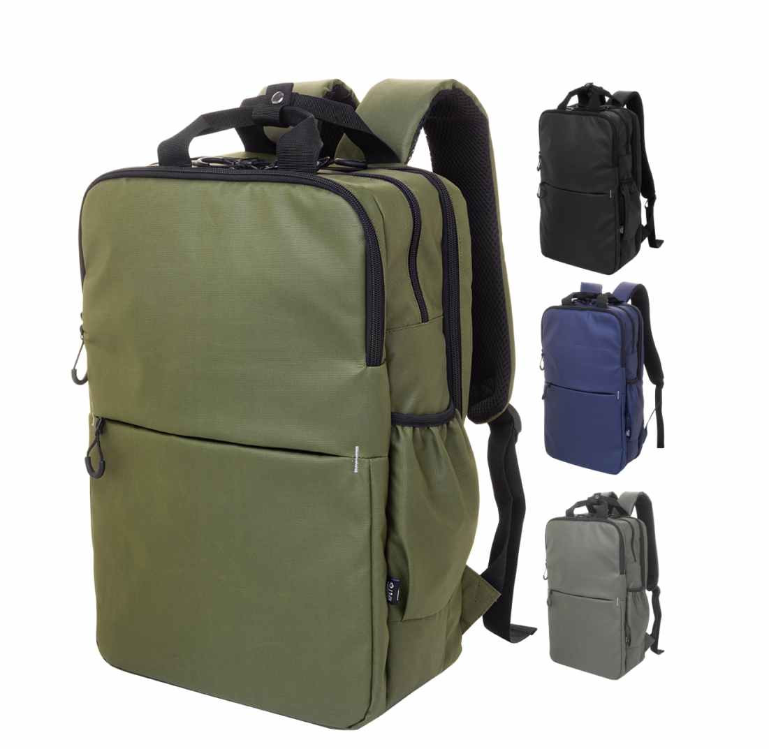 Mooie Rugtas van waterdichte rPET, PU gecoat 600D Polyester. . Met 2 vakken met ritssluiting. 2 voorvakken ook met ritssluiting. Zijvakken en een laptopvak 16 inch die gewatterd is. Aan de rugtas zit een trolleyband. Hierme kun je de tas gemakkelijk op een trolley zetten. De rug en schouederbanden zijn ook gewatteerd. Op iedere tas is een rPET label gestickt. We kunnen de tas voor u bedrukken op het voorvak of daarboven. We drukken de tas dan in 1- of meerdere drukkleuren. Voor de prijs maakt het niet uit in hoeveel kleuren uw logo gedrukt moet worden. Wanneer u bij uw bestelling dan kiest voor 1 drukkleur en daarna kiest u de drukkleur "full-color" dan drukken wij uw logo in meerdere kleuren terwijl u slechts voor 1 drukkleur betaald. U kunt deze mooie complete rugtas ook zonder opdruk bestellen vanaf 5 stuks.