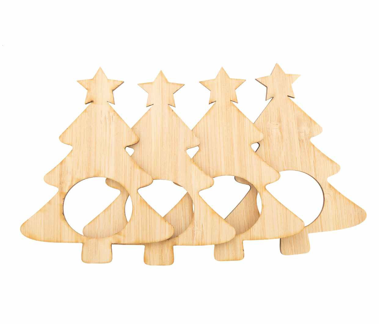 Set van 4 servetringen in de vorm van een kerstboom. Deze servetringen zijn 75 x 96 x 12 mm en zijn gemaakt van Bamboe multiplex. We kunnen de servetringen van uw logo voorzien d.m.v. een lasergravure. Uw logo wordt dan als het ware in het hout gebrand. De hieronder vermelde graveerprijs is voor 1 gravure per set. Indien u op alle 4 servetringen een gravure wilt dan kunt u dat bij uw bestelling aangeven in de kolom "opmerkingen" We sturen u dan daarna eerst een prijs. Ook kunt de servetring sets ook bestellen zonder uw logo. De minimale afname is dan 50 stuks.