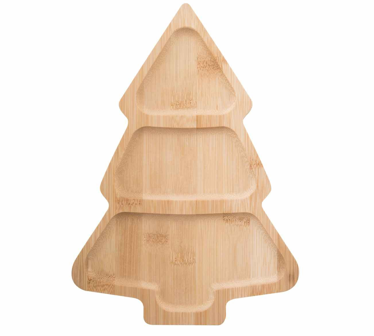 Snackschaal in de vorm van een kerstboom. Deze snackplank is 191 x 276 x 12 mm. Gemaakt van bamboehout. Bamboe is een snelgroeiende houtsoort. Het gebruik van dit materiaal is daarom extra duurzaam. Omdat bamboe een natuurproduct is kunnen artikelen onderling van elkaar verschillen. We kunnen deze schaal voor u lasergraveren met uw logo en/of reclametekst. U kunt de snijplanken ook zonder uw logo bestellen. De minimale afname is dan 50 stuks.