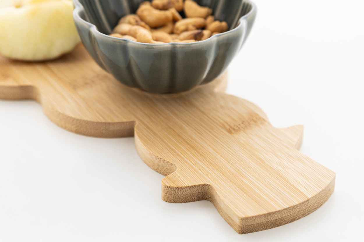 Snijplank van hout (Bamboe) in de vorm van een Kerstman. De snijplank heeft een afmeting van 26,5 x 17 cm en is ca. 1 cm dik. Deze kerst Snijplank kunnen wij van uw logo voorzien door middel van een lasergravure. Uw logo wordt dan exact aangbracht met een laserstraal in het hout. Het wordt er dan als het ware ingebrand. We kunnen de snijplank eventueel ook voorzien van individuele namen. Dit maakt de snijplank een echt persoonlijk geschenk. Indien u de snijplanken wilt laten voorzien van individuele namen dan kunt u contact met ons opnemen. Wij bespreken dan samen met u de mogelijkheden. U kunt deze serveerplaken ook zonder uw logo bestellen. Dit kan dan al in een kleine oplage. De minimale afname zonder uw logo is dan 25 stuks.