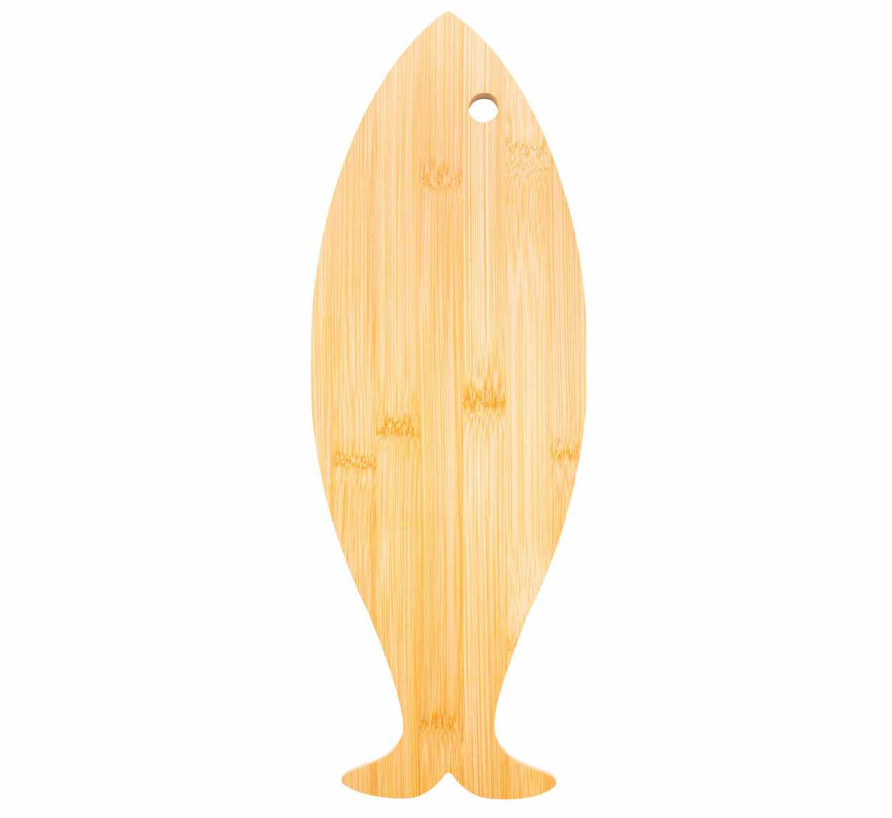 Snijplank van hout (Bamboe) in de vorm van een vis. Het oog van de vis is uitgestanst en kan daardoor gemakkelijk opgehangen worden. De snijplank heeft een afmeting van 40 x 14 cm en is ca. 1 cm dik. Deze Vis Snijplank kunnen wij van uw logo voorzien door middel van een lasergravure. Uw logo wordt dan exact aangbracht met een laserstraal in het hout. Het wordt er dan als het ware ingebrand. We kunnen de snijplank eventueel ook voorzien van individuele namen. Dit maakt de snijplank een echt persoonlijk geschenk. Indien u de snijplanken wilt laten voorzien van individuele namen dan kunt u contact met ons opnemen. Wij bespreken dan samen met u de mogelijkheden. U kunt deze serveerplaken ook zonder uw logo bestellen. Dit kan dan al in een kleine oplage. De minimale afname zonder uw logo is dan 25 stuks.