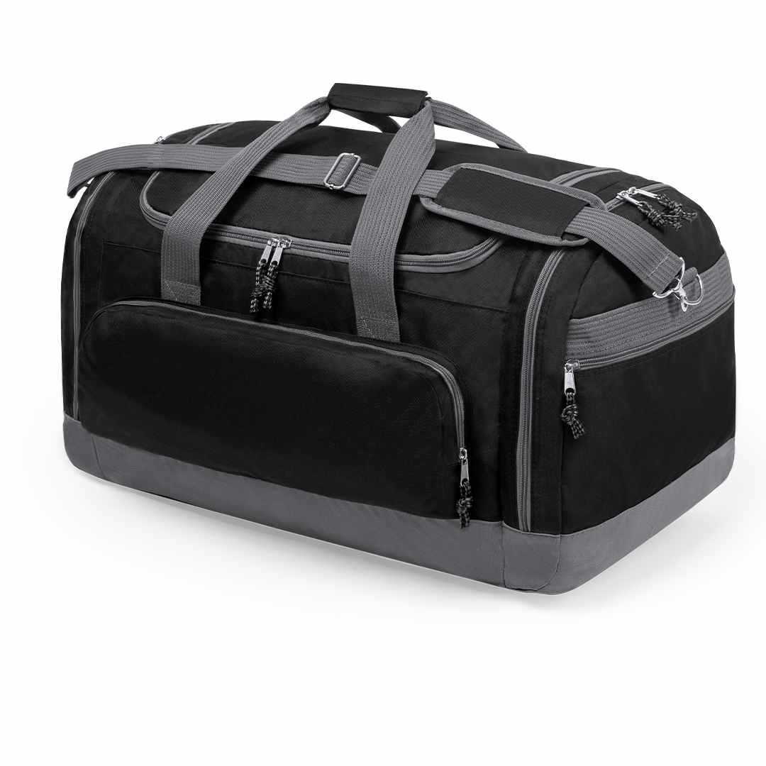 Deze Sporttas / Reistas is van een groot formaat. Maar liefst 65 x 34 x 33 cm. De sporttas is gemaakt van sterk 600D polyester. Tweekleurige afwerking met een groot hoofdvak en verschillende zijvakken met ritssluiting. De draaghengsles zijn extra stevig. Wordt geleverd met een verstelbare schouderriem met karabijnhaaksluiting. De tas is uitgevoerd met een versterkte basis. We kunnen uw logo drukken op de tas in maximaal 1 drukkleur vanaf 15 stuks. Wilt u toch uw logo liever in meerdere kleuren gedrukt hebben dan kunt u contact met ons opnemen. U kunt deze sporttas ook zonder opdruk bestellen, De minimale afname zonder opdruk is 12 stuks.