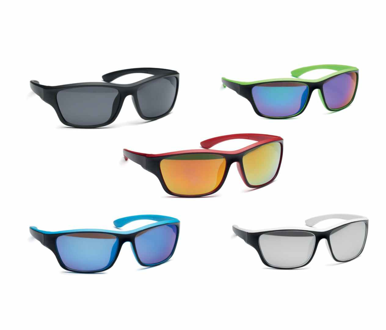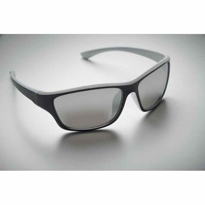 Gave sportzonnebril met spiegel glazen. De glazen hebben UV400 bescherming. Deze mooie zonnebril kunnen wij voor u bedrukken op de pootjes. De prijs hieronder is voor het bedrukken op 1 ppotje. Indien u op beide ppotjes gedrukt wilt hebben dan kunt u dat aangeven in de kolom "opmerkingen"bij uw bestelling. We berekenen de drukprijs dan 2x. U kunt de zonnebril ook zonder opdruk bestellen. De minimale afname is dan 35 stuks. U mag daarbij de kleuren mixen.