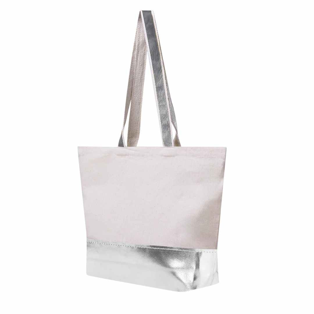 Deze mooie boodschappentas kan ook als hippe strandtas dienen. De tas heeft een afmeting van 35 x 48 x 15 cm. Gemaakt van gerecycled katoen (220 grams kwaliteit) De tas heeft een bodem van glanzend PU-leer in Goud, Zilver of Roze. Ook de lange hensles zijn met hetzelfde materiaal bekleed. Het maximaal draagvermogen is maar liefst 8 kg. We kunnen uw logo en/of tekst voor u op de tas drukken. U kunt de tassen ook zonder opdruk bestellen vanaf 25 stuks.