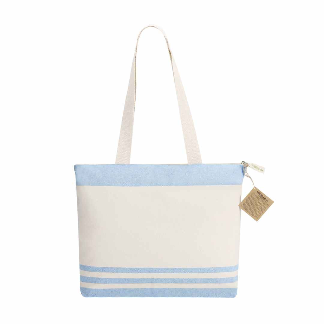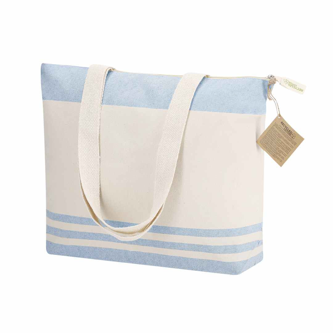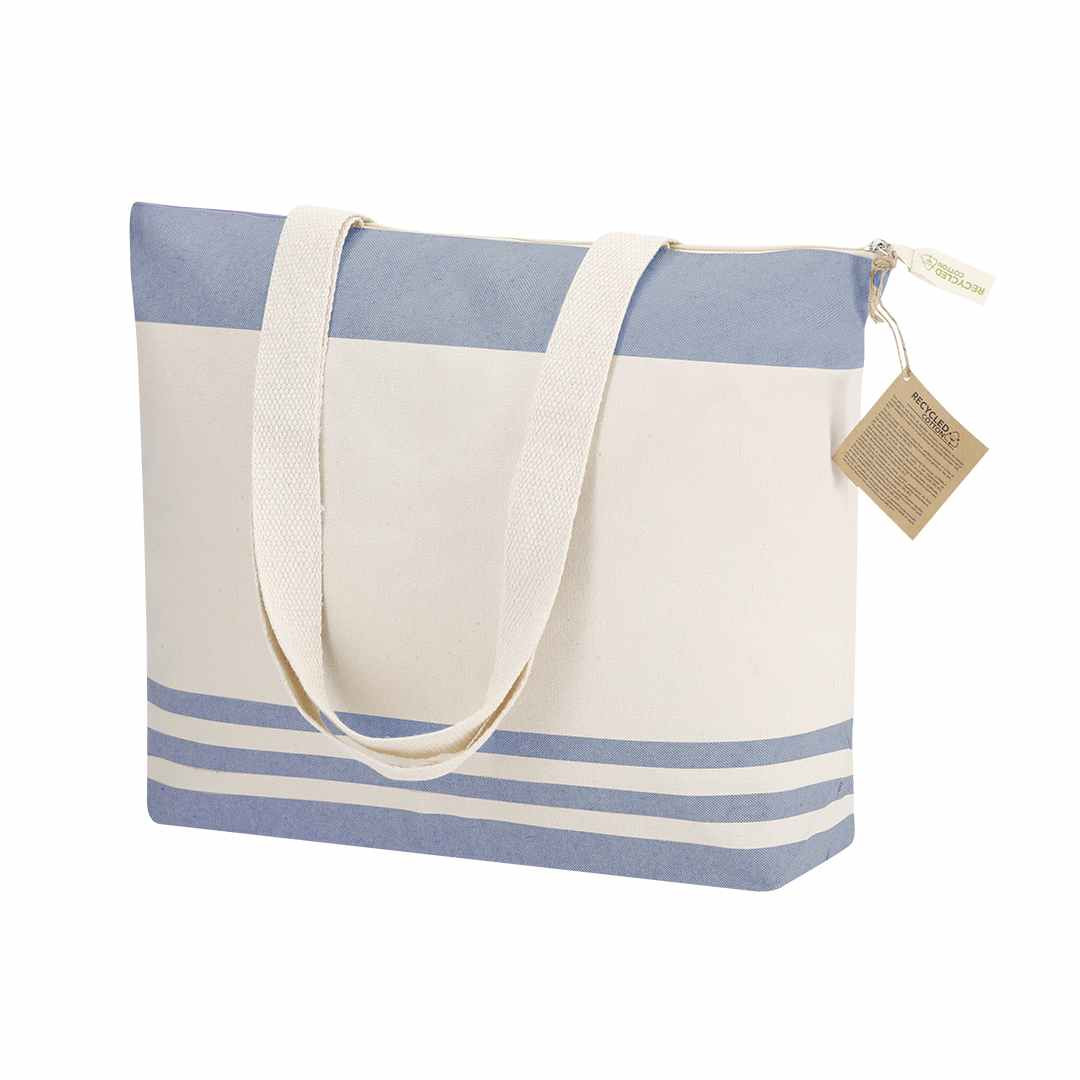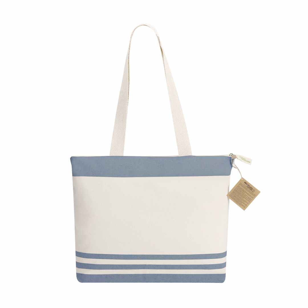 Mooie strandtas die is gemaakt van 300 grams gerecycled katoen. Afmeting 48 x 35 x 12 cm. Uitgevoerd in mooie zachte kleuren. De lange hengsels zijn extra verstevigd aangebracht. Aan iedere strandtas zit een kartonnen labeltje dat aangeeft dat het van gerecycled katoen is gemaakt. Ook op de ritstrekker is dit aangegeven. We kunnen deze tassen voor u bedrukken met uw logo. We drukken tassen voor u dan in 1- of meerdere drukkleuren. Voor de prijs maakt het niet uit in hoeveel kleuren uw logo gedrukt moet worden. Wanneer u bij uw bestelling dan kiest voor 1 drukkleur en daarna kiest u de drukkleur "full-color" dan drukken wij uw logo in meerdere kleuren terwijl u slechts voor 1 drukkleur betaald. U kunt eventueel de strandtassen ook zonder opdruk bestellen. De minimale afname zonder opdruk is 15 stuks.