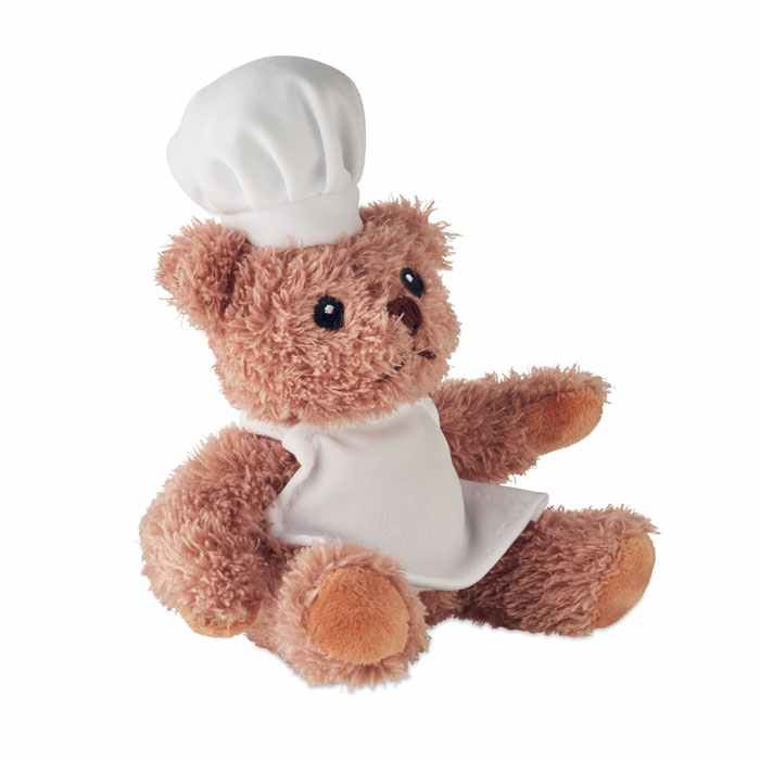 Teddybeer van Pluche die is gekleed als Chef Kok. Deze pluche beer is erg leuk om weg te geven in bijvoorbeeld een restaurant of andere horeca. De ogen, neus en mond zijn geborduurd, wat deze teddybeer veilig voor kinderen maakt. Het shirtje kunnen we voor u bedrukken met uw logo. We kunnen dit artikel voor u bedrukken in 1- of meerdere drukkleuren. Voor de prijs maakt het niet uit in hoeveel kleuren uw logo gedrukt moet worden. Wanneer u bij uw bestelling dan kiest voor 1 drukkleur en daarna kiest u de drukkleur "full-color" dan drukken wij uw logo in meerdere kleuren terwijl u slechts voor 1 drukkleur betaald. U kunt deze leuke beertjes ook zonder logo besellen vanaf 20 stuks.