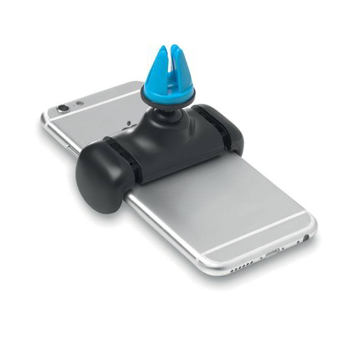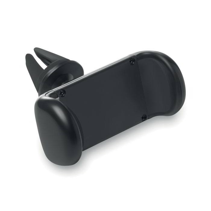 Handige universele telefoonhouder die u in het ventilatorrooster van uw auto kunt klemmen. Iedere telefoon past er in. Deze telefoonklem is volledig draaibaar. Uw logo kunnen wij bedrukken op de GSM houders. De afmeting van dit artikel is 7 x 7 x 3 cm.