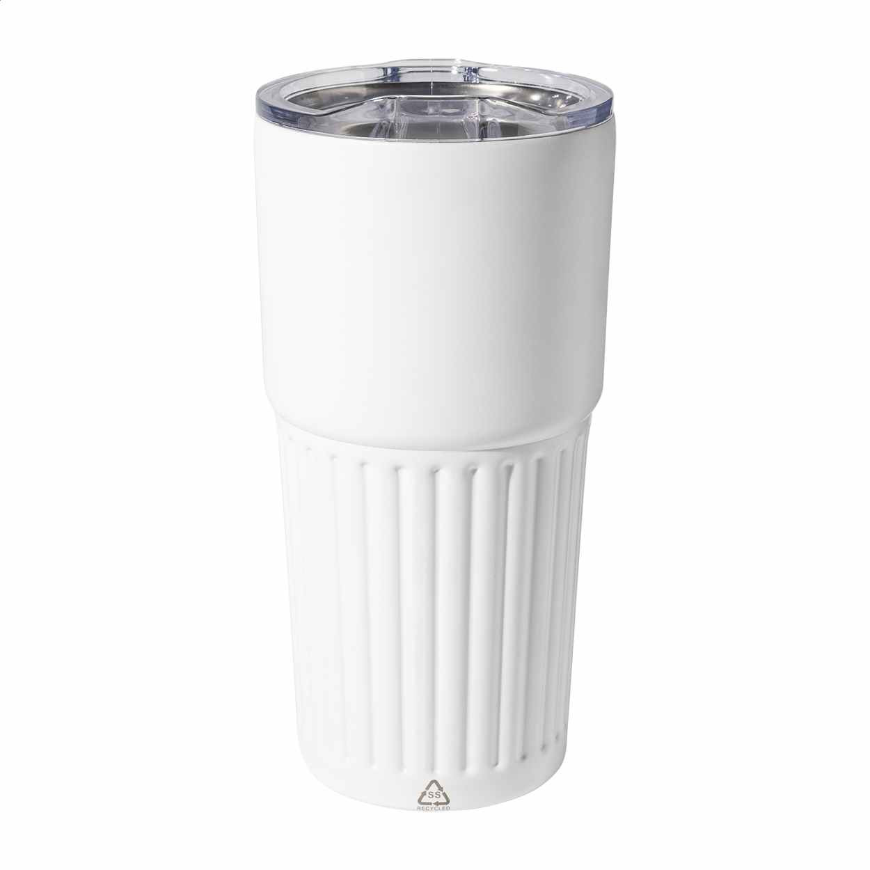 Dubbelwandige Thermobeker die is gemaakt van gerecycled roestvrijstaal. Op iedere beker is dan ook een bescheiden recycle-logo aangebracht. Deze Thermobeker heeft een inhoud van maar liefst 600 ml en bevat een ABS kunststof deksel met een afsluitbare schuifklep. Deze is spatwaterdicht. De beker wordt per stuk verpakt geleverd in een doosje. We kunnen deze bekers van uw logo voorzien d.m.v. een lasergravure. uw logo wordt dan met een laserstraal in het metaal gezet. Het zal er dan in de vaatwasser niet afgewassen kunnen worden. Deze bekers kunnen wij eventueel ook van individuele namen voorzien. Dit maakt dit geschenk nog persoonlijker! Indien u hiervan gebruik wilt maken dan kunt u dat melden bij uw bestelling in de kolom "opmerkingen". Wij nemen dan contact met u op om de mogelijkheden met u te bespreken. U kunt deze thermobeker ook zonder uw logo bestellen vanaf 25 stuks.