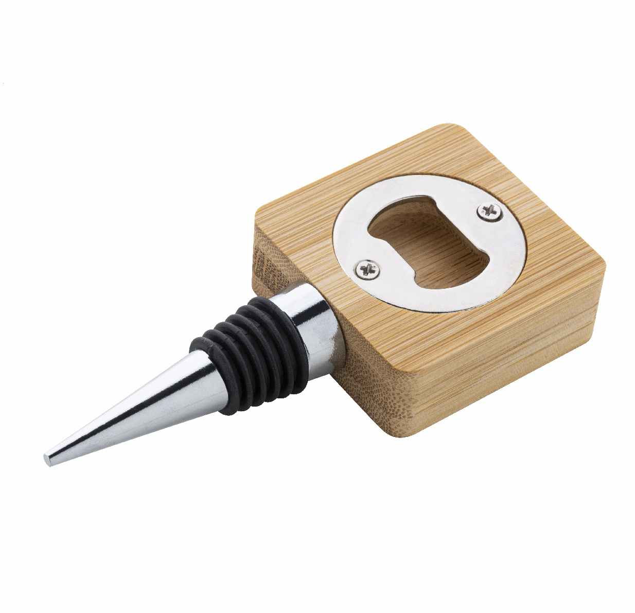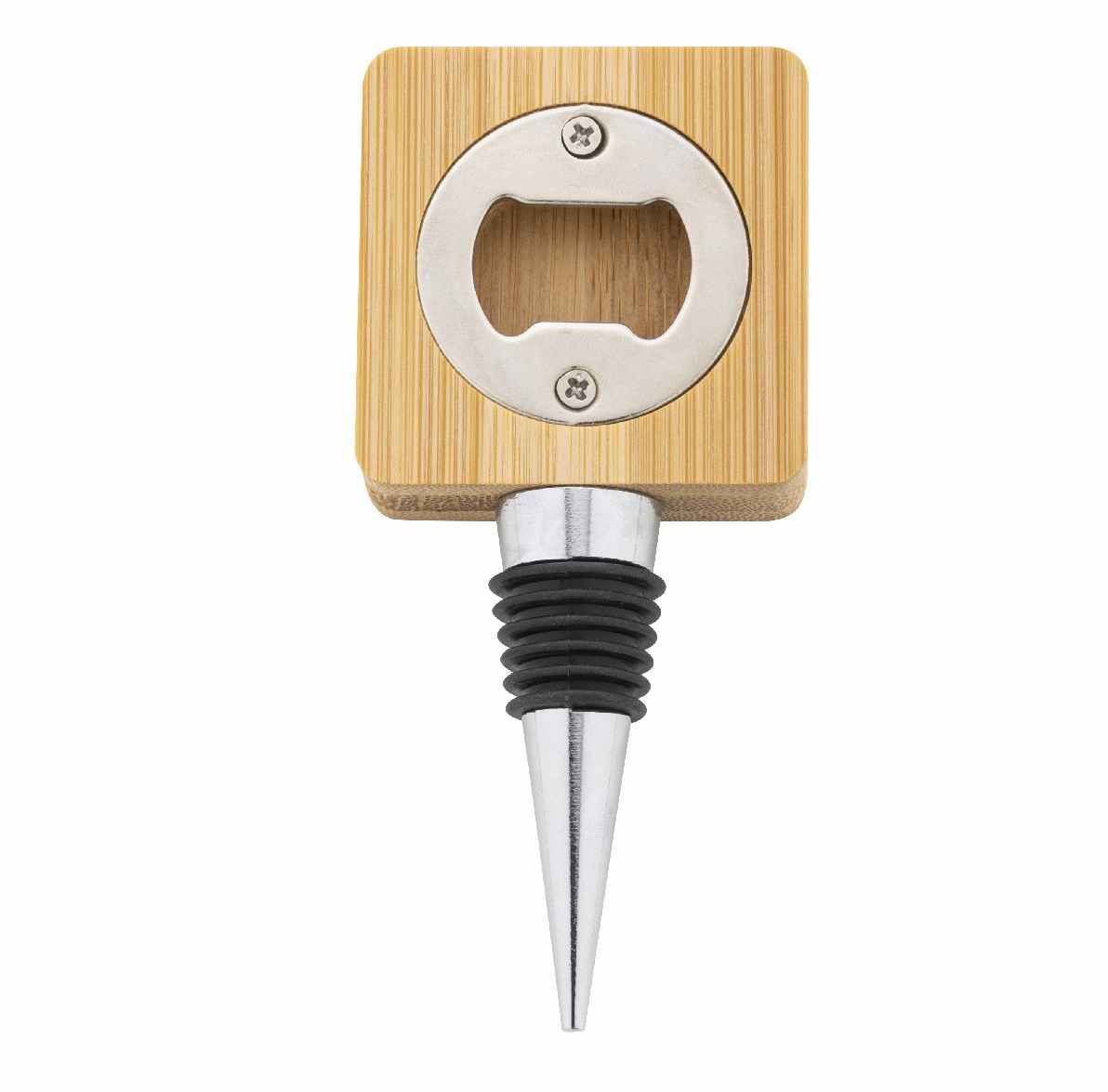 Wijnstopper met een flesopener om uw fles mee af te sluiten. Deze flesopener zit in een bamboe houten houder. We kunnen uw logo lasergraveren in het bamboe. Dit geschenk kunnen wij eventueel ook van individuele namen voorzien. Dit maakt dit geschenk nog persoonlijker! Indien u hiervan gebruik wilt maken dan kunt u dat melden bij uw bestelling in de kolom "opmerkingen". Wij nemen dan contact met u op om de mogelijkheden met u te bespreken. Deze flesstop en flesopener kunnen we ook zonder gravure aan u leveren. De minimale afname zonder gravering is 50 stuks.
