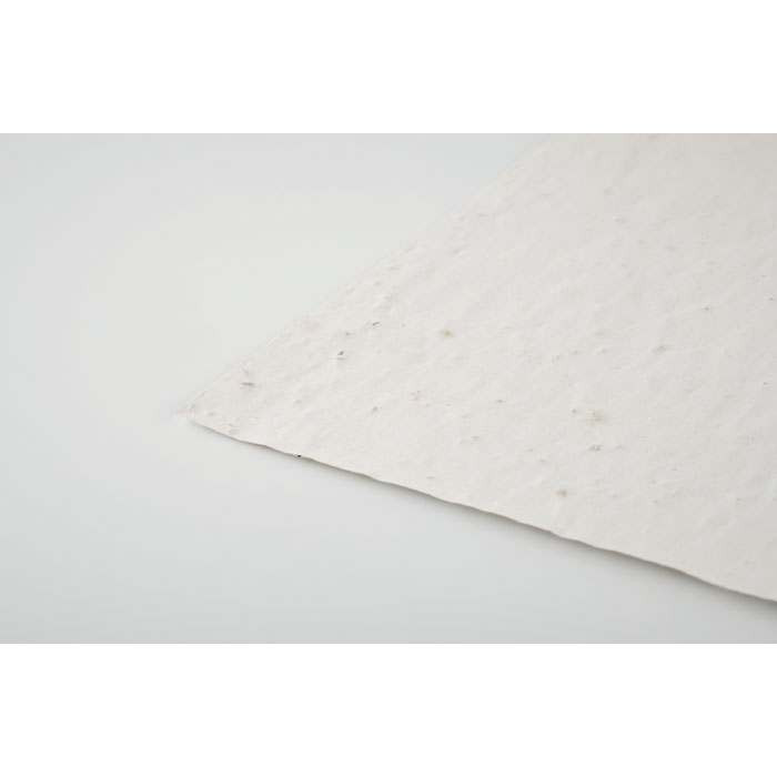 Een vel papier in A5 formaat met daarin verwerkt diverse soorten bloemzaden. Deze vellen kunnen wij voor u bedrukken met uw tekst en/of logo. Het drukken doen wij dan in Full-Colour. Voor de drukprijs maakt het niet uit in hoeveel kleuren wij voor u moeten drukken. U kunt bij uw bestelling de drukkleur Full-Color invullen. U betaald dan slechts 1 x de drukprijs. Indien u deze vellen zonder opdruk wilt bestellen dan kan dat vanaf 250 stuks. Dit artikel is in de EU gemaakt. :