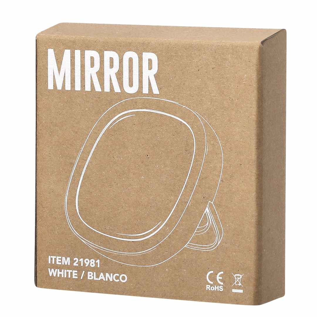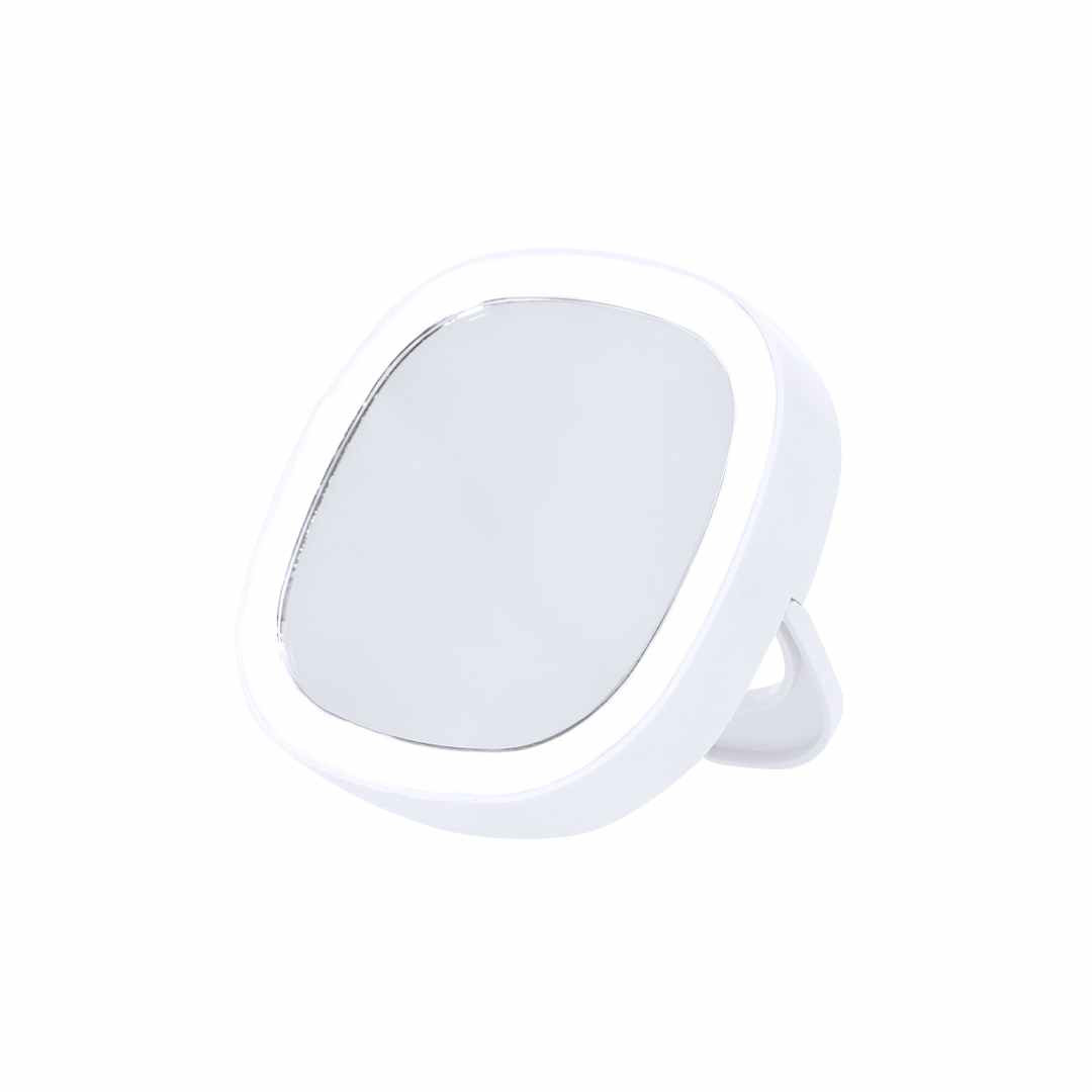 Handige zakspiegel met verlichting. Deze spiegel is voorzien met licht door middel van 12 LED's die u in 2 standen kunt zetten. De spiegel is met 1 x vergroting. Aan de achterzijde is een uitklapbare standaard aangebracht. De afmeting van de spiegel is 8,5 x 8,5 x 1,8 cm. De verlichting werkt op 3 AAA batterijen. (niet inbegrepen) Uw logo kunnen wij voor u drukken op de zijrand vanaf 50 stuks. U kunt deze zakspiegels ook bestellen zonder uw opdruk. Dit kan dan al in de kleine oplage van 25 stuks. Iedere spiegel zit per stuk verpakt in een bruin kartonnen doosje.