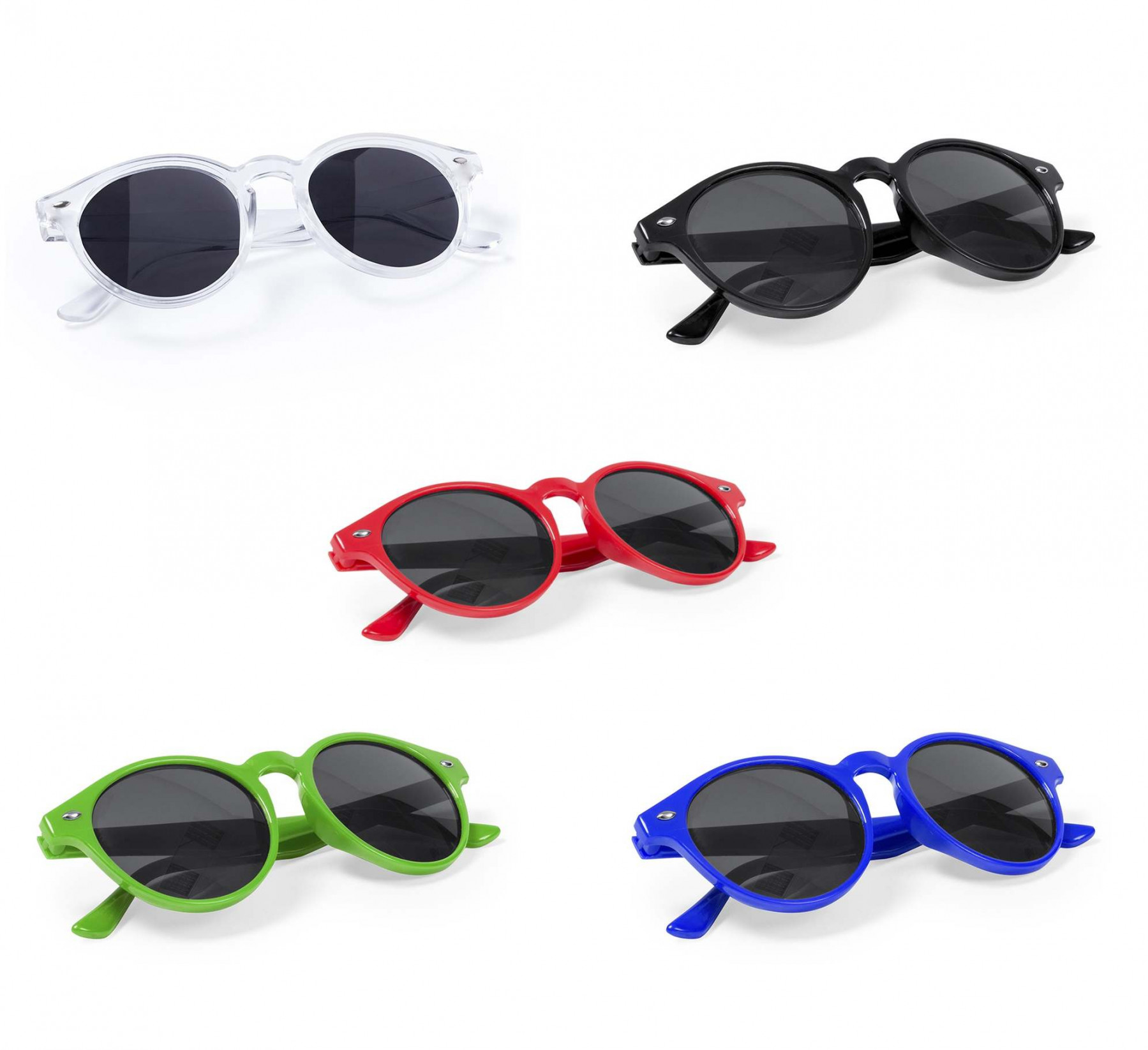 Zonnebril in een verrassend model. De ronde glazen maken deze bril echt bijzonder. De glazen hebben een UV400 bescherming. De bril kunnen wij voor u drukken op één of beide pootjes. We drukken standaard op 1 pootje. Indien u op beide pootjes de opdruk wilt dan kunt u dat in de kolom "opmerkingen" aangeven. Indien u de brillen zonder opdruk wilt bestellen dan kan dat vanaf 100 stuks. De levertijd zonder opdruk is ca. 4 a 5 werkdagen. Met opdruk is de levertijd ca. 2 weken.