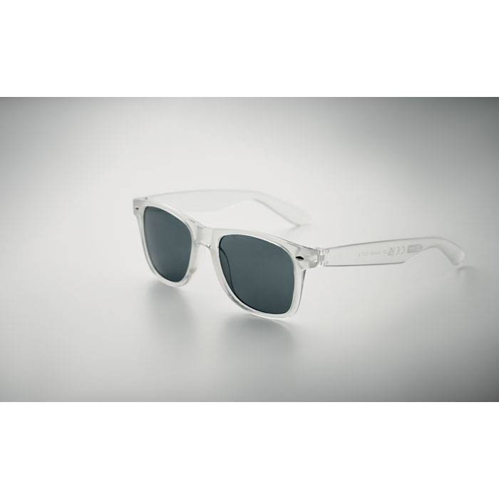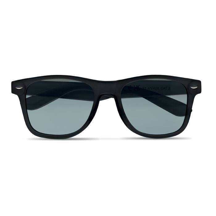 Deze zonnebrillen zijn van gerecycled kusntstof (RPET matriaal). RPET is een materiaal dat is gemaakt van oude PET-flessen. Hier wordt een kunststof korrel van gemaakt een daar is dan dit artikel weer van gemaakt. Dit maakt dit artikel een echt duurzaam artikel. Aan de binnenzijde van een pootje staat dan ook het RPET logo gedrukt. De zonnebrillen zijn verkrijgbaar in verschillende kleuren en kunnen wij voor u bedrukken op de p0otjes. Wanneer u een bestelling plaatst dan drukken wij deze standaard op 1 pootje. Indien u wilt dat wij deze zonnebrillen op beide pootjes drukken dan kunt u dit aangeven bij uw bestelling in de kolom "opmerkingen" De zon is uitgevoerd met glazen met een UV400 bescherming. Indien u deze brillen zonder opdruk wilt bestellen dan kan dat al vanaf 50 stuks.