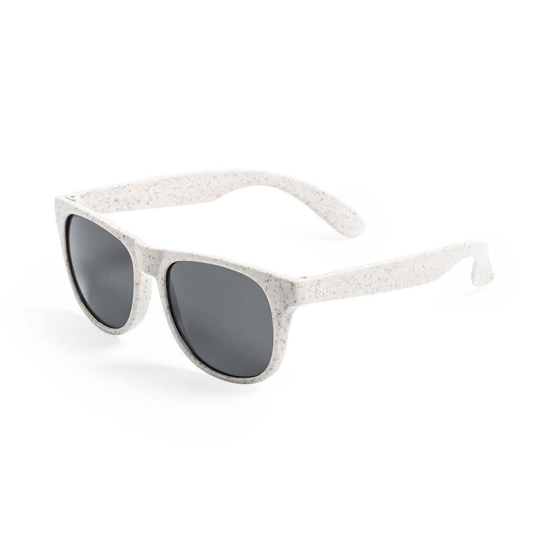 Zonnebril waarvan het montuur gemaakt is van tarwestro. Voorzien van het label Wheat Straw om het gebruik van natuurlijke grondstoffen aan te moedigen en de uitstoot van verontreinigende stoffen te verminderen. De glazen hebben een UV400 bescherming. De bril kunnen wij voor u drukken op één of beide pootjes. We drukken standaard op 1 pootje. Indien u op beide pootjes de opdruk wilt dan kunt u dat in de kolom "opmerkingen" aangeven. Indien u de brillen zonder opdruk wilt bestellen dan kan dat vanaf 100 stuks. De levertijd zonder opdruk is ca. 4 a 5 werkdagen. Met opdruk is de levertijd ca. 2 weken.
