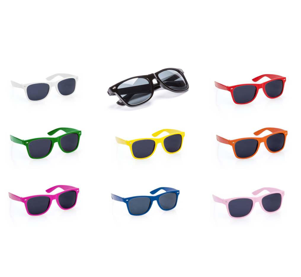 Zonnebril met een hard color glanzend afgewerkt montuur. De glazen zijn stanaard zwart en niet spiegelend en hebben een UV400 bescherming. Deze zonnebril is verkrijgbaar vanaf 100 stuks in heel veel verschillende kleuren. De bril kunnen wij voor u drukken op één of beide pootjes. We drukken standaard op 1 pootje. Indien u op beide pootjes de opdruk wilt dan kunt u dat in de kolom "opmerkingen" aangeven. Indien u de brillen zonder opdruk wilt bestellen dan kan dat vanaf 100 stuks. De levertijd zonder opdruk is ca. 4 a 5 werkdagen. Met opdruk is de levertijd ca. 2 weken.